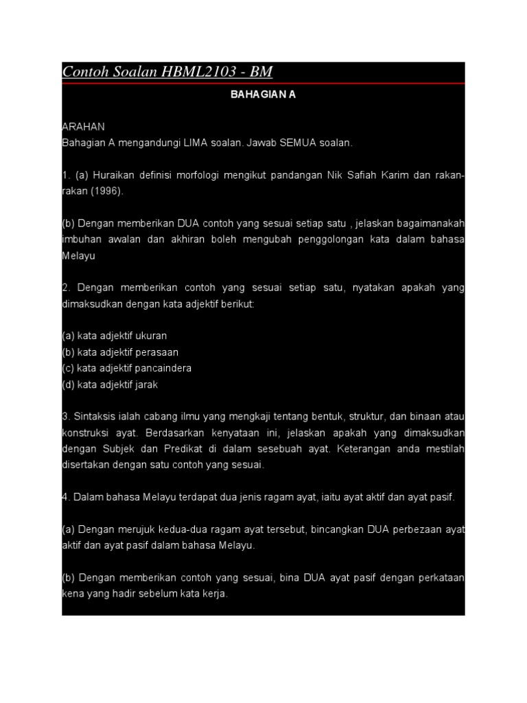 View soalan esei sintaksisdocx from BAHASA BMMB3044 at IPG Kampus Bahasa Melayu. Ayat terbitan dalam bahasa Melayu terhasil daripada tiga proses. Kata nafi frasa sendi nama latihan 3.